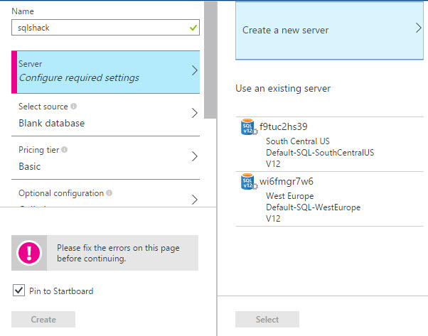 Figure 4. The prices for databases Select the server option to select an existing server or to create a new one. In this example, we will create a new Server.