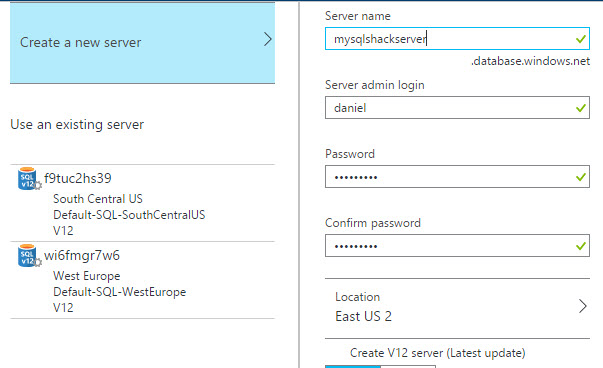 Figure 7. Server admin In the portal, you will see a notification and a message that the database is being created.
